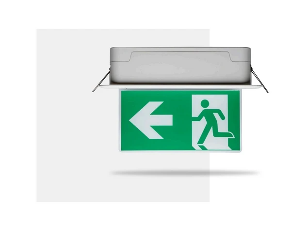 This is a double sided, recessed exit light with a compact Polycarbonate body design.