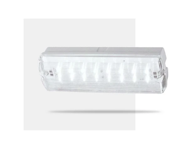 The Galaxy is a surface mounted bulkhead emergency sign with a powder coat finish suitable for interior and exterior use.